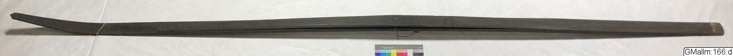 "Skidan har en ovanligt vacker form, något tillspetsad framtill och rakt avskuren baktill. Fotspannet är tydligt, fotstället oklätt, remhålet brett och bindsel fattas."