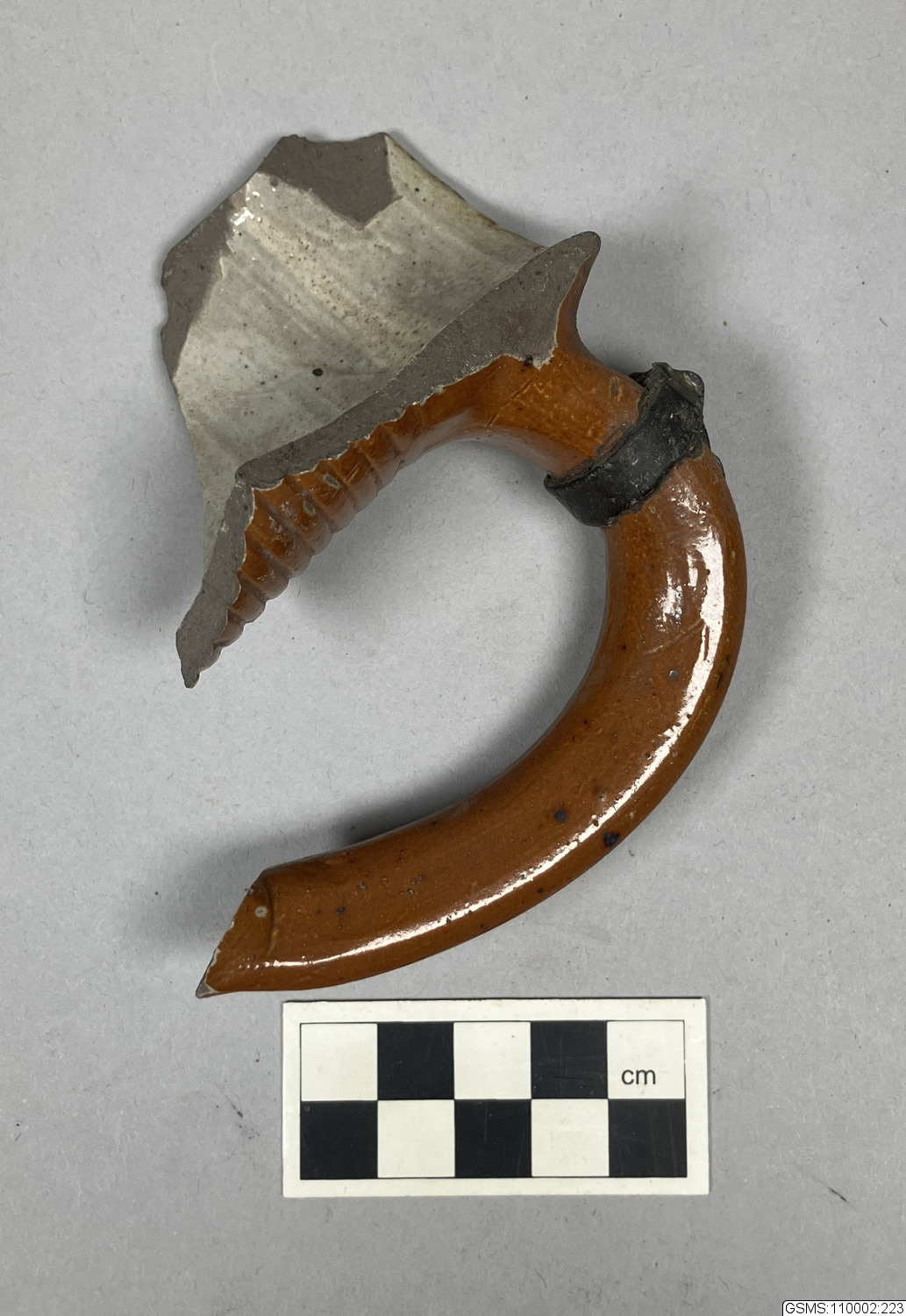 - Raeren. Med rester av lockhållaren i tenn kvar.