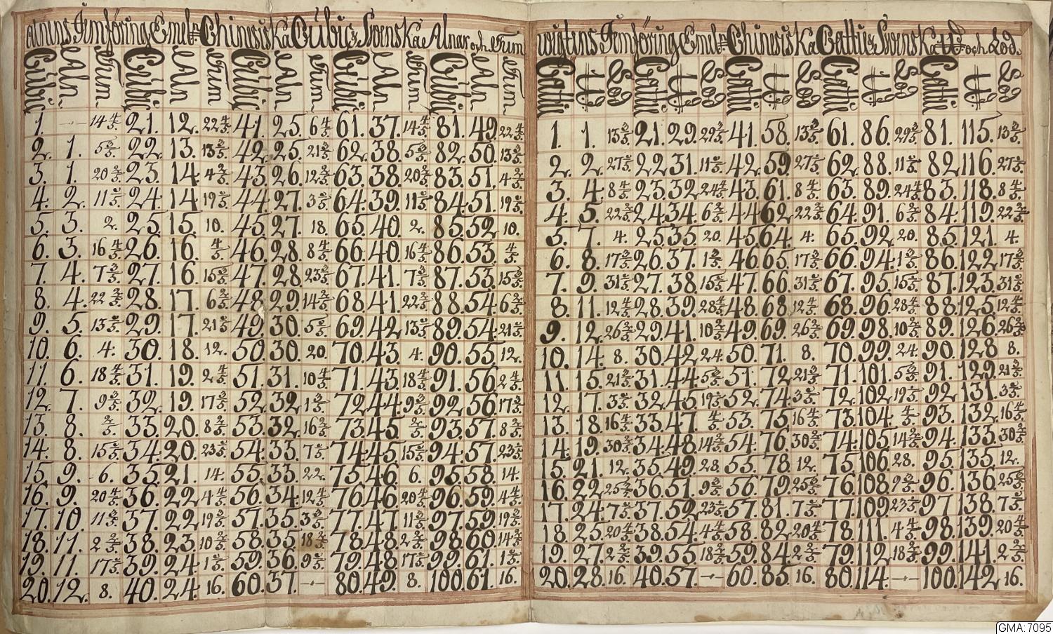 GMA:7095 :: tabell, tabeller, jämförelsetabell