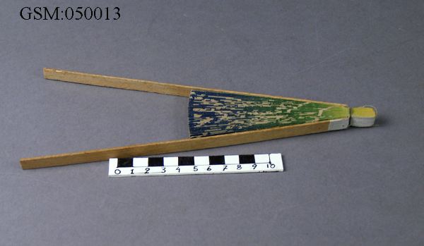 cirkelrund solfjäder som består av veckat papper limmat på två trälistar. När listerna förs 180 grader åt var sitt håll, vecklas papperscirkeln ut, och de två trälisterna fungerar som handtag.