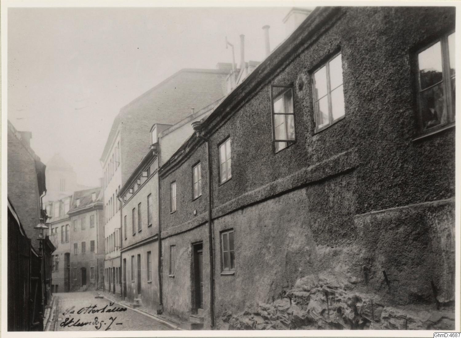 Sträckningsbild Ekelundsgatan blick mot söder. Från höger nr 7, 9, 11 och 13, stadens 4 rote, nr 6, 67 och 66.