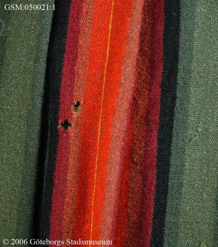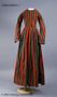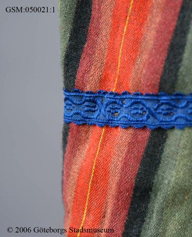 - Ylletyget på insidan av knäppningen i ryggen är mycket nedbrutet med bristningar som riskerar att bli värre när man knäpper klänningen med hyskor och hakor. Detta bör förstärkas. Dessutom har sömmen i kjolen mitt bak gått upp någon decimeter. Klänningen har ett flertal hål efter skadedjur. /aan 2012-01-04