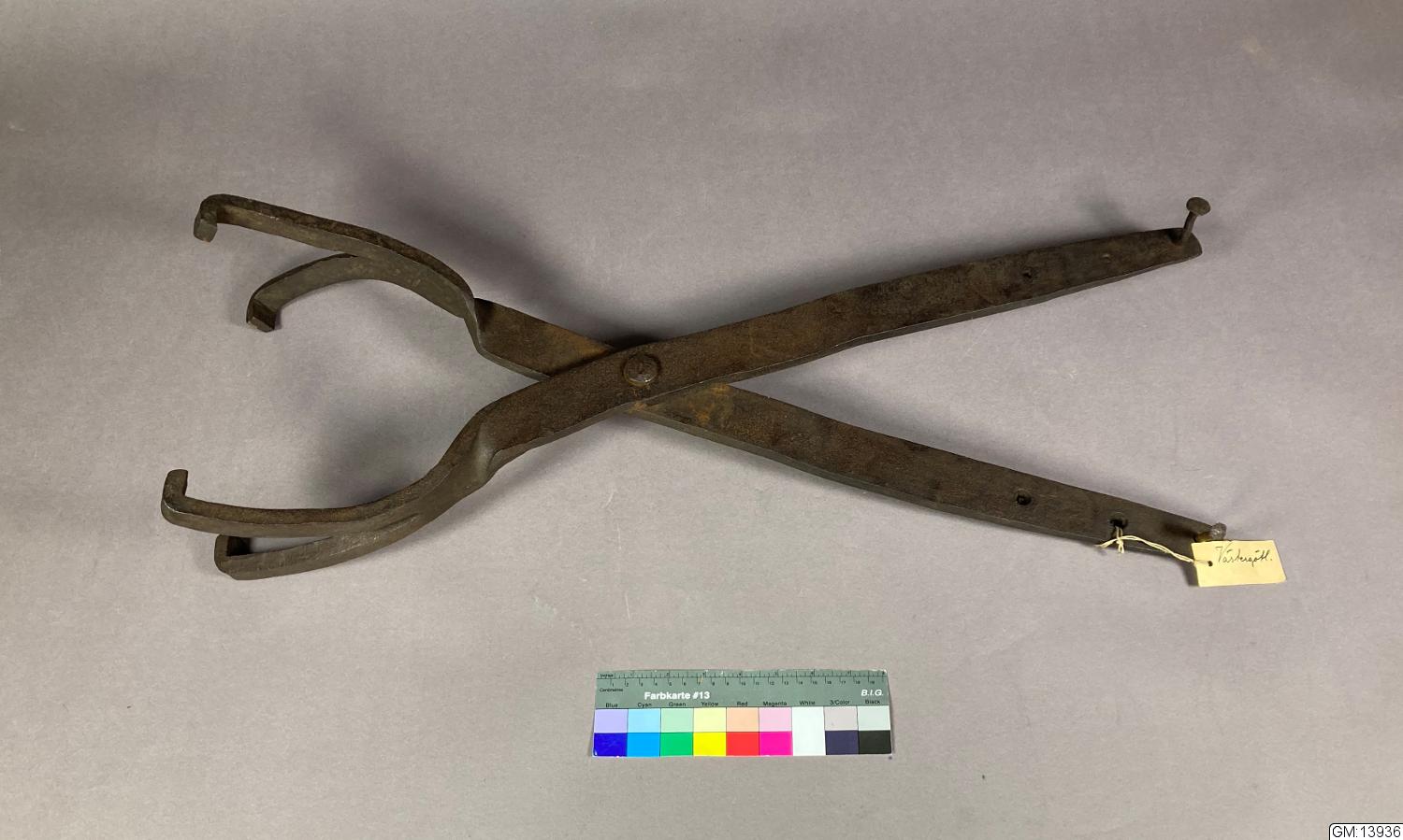 Tång till att ta sten med, när stenar fastnade i noten vid notdragning. Tången var försedd med långt skaft av trä.