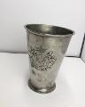Höjd 18,2 cm; mynningens diameter 13 cm; fotens diameter 8,2 cm. Av tenn.