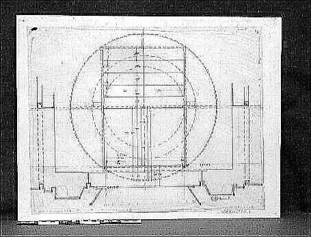 Planritning ritad av Knut Ström (1887-1971) över Lorensbergsteaterns vridscen. Monterad på papper.