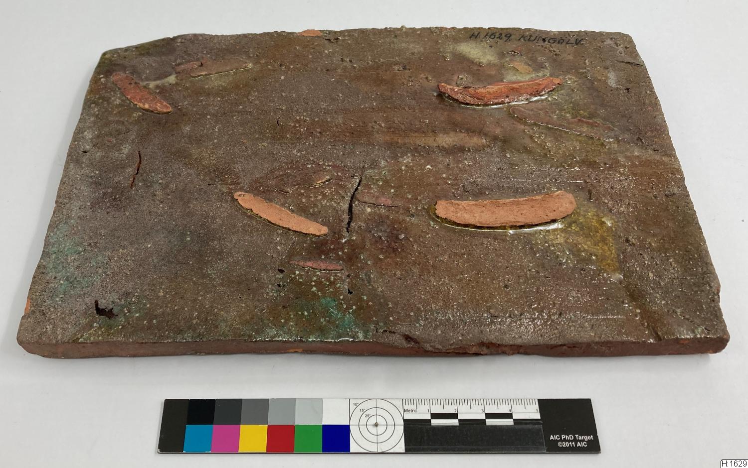 H:1629 :: ställningsplåt, glaserad lerplatta