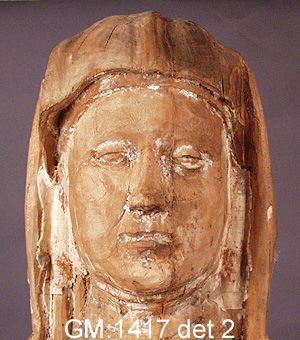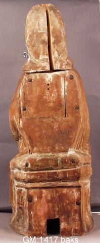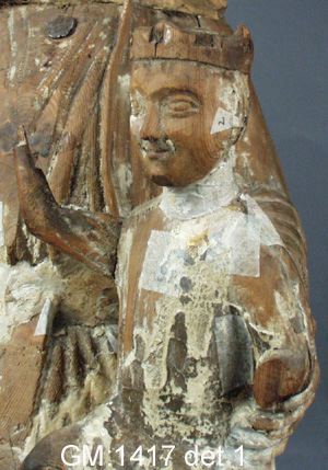 - Skulpturen gjordes ursprungligen som madonnabild, men omgjordes under 1400-talet till en Anna själv tredje-framställning, varvid den fick nytt huvud i lövträ med huvud- och haklin. Den då tillförda Mariabilden är nu försvunnen.