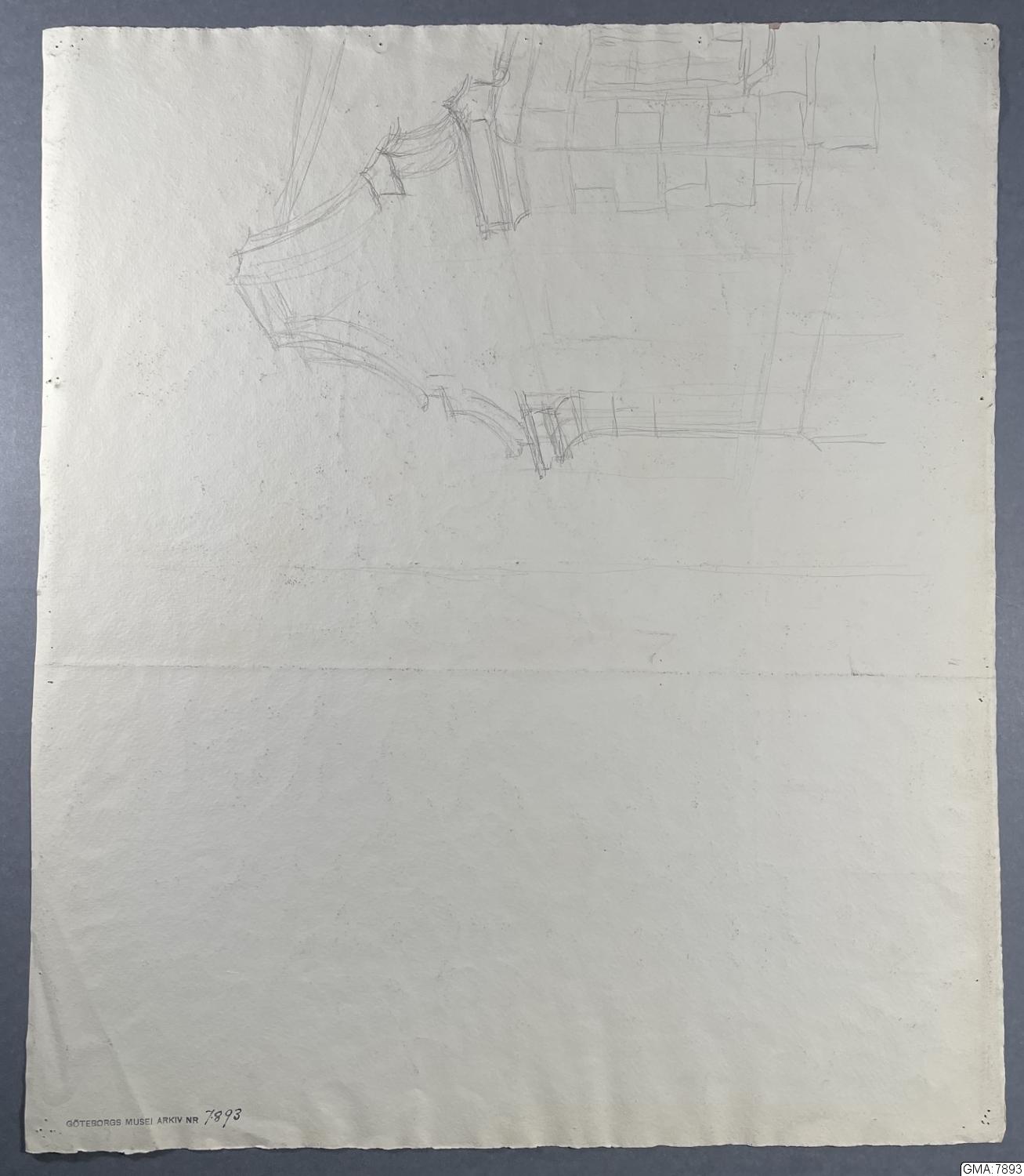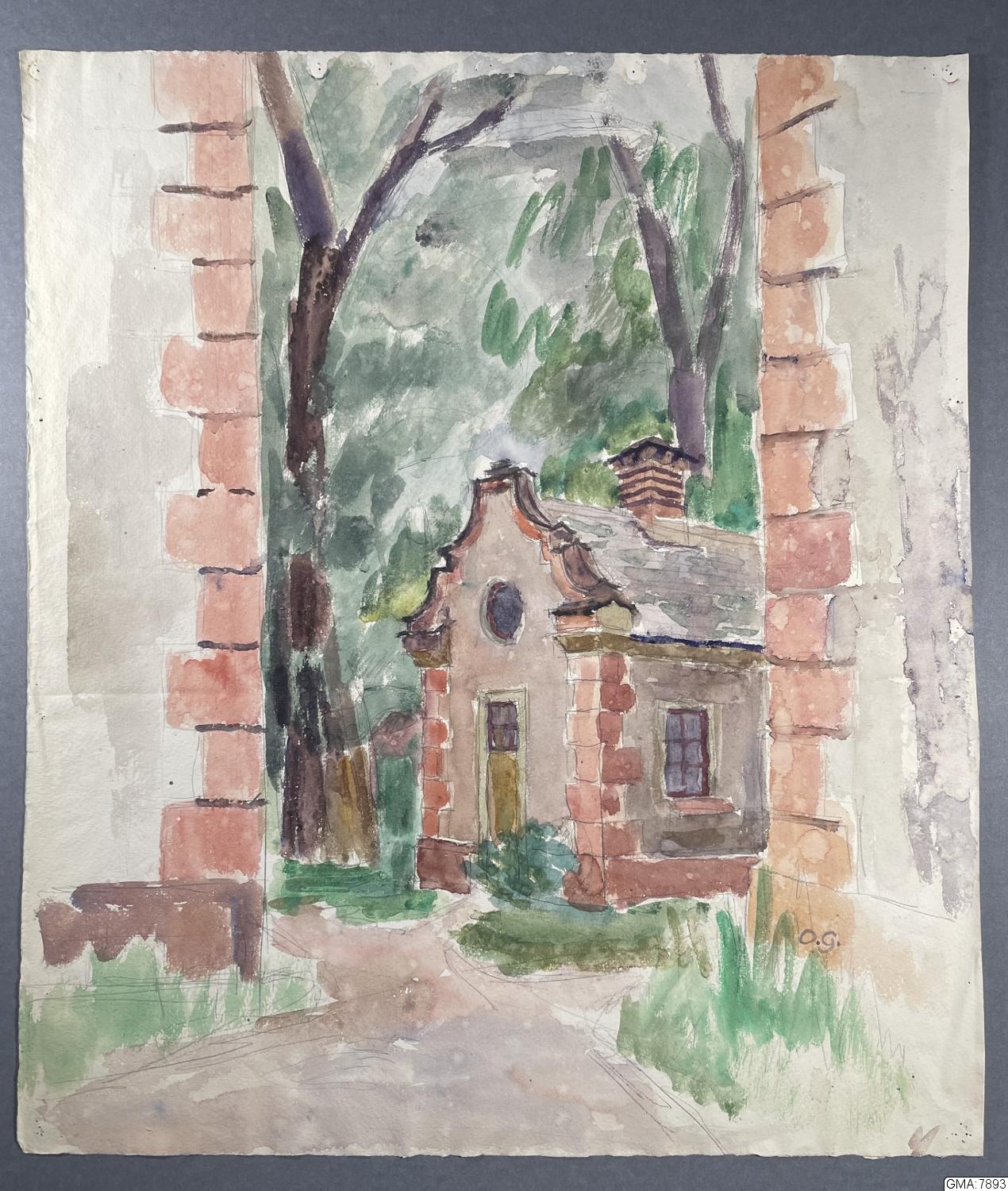 akvarell, motiv från Lindströmska stiftelsen Vasagatan 3. Sign. "O. G. (= arkitekten vid Byggnadsnämnden i Göteborg Olof Gottowt-Gesang).