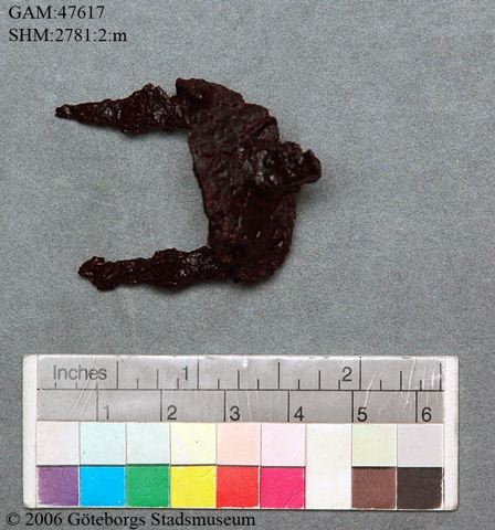 deposition; Överlåtelse av arkeologiska fynd från Statens historiska museer 2012 (se dnr358/10 870); har varit deponerade på Göteborgs stadsmuseum sedan 1945 och överlåtna 2012.