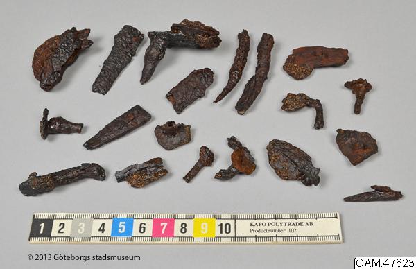 deposition; Arkeologiska fynd, ursprungligen tillhörande Statens historiska museer. Deponerade på Göteborgs arkeologiska museum, sedermera Göteborgs stadsmuseum, sedan 1945. 2012 överlåtna till Göteborgs stadsmuseum, se dnr 358/10 870.