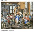 - Gouachemålning på pergament uppklistrad på pannå av björk trol. Av oidentifierad konstnär. Motivet är typiskt för flamländskt måleri omkr. år 1550. Måleriet bär likheter med miniatyrmåleriet/illuminerade manuskript vilket florerade i området, se Ghent-Brygge skolan och utövare som Gerard Horenbout och Simon Bening - vilka ju dock behandlade mer religiösa teman. Kan möjligtvis målningen vara från en följare till någon av dessa?