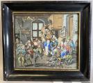 - Gouachemålning på pergament uppklistrad på pannå av björk trol. Av oidentifierad konstnär. Motivet är typiskt för flamländskt måleri omkr. år 1550. Måleriet bär likheter med miniatyrmåleriet/illuminerade manuskript vilket florerade i området, se Ghent-Brygge skolan och utövare som Gerard Horenbout och Simon Bening - vilka ju dock behandlade mer religiösa teman. Kan möjligtvis målningen vara från en följare till någon av dessa?