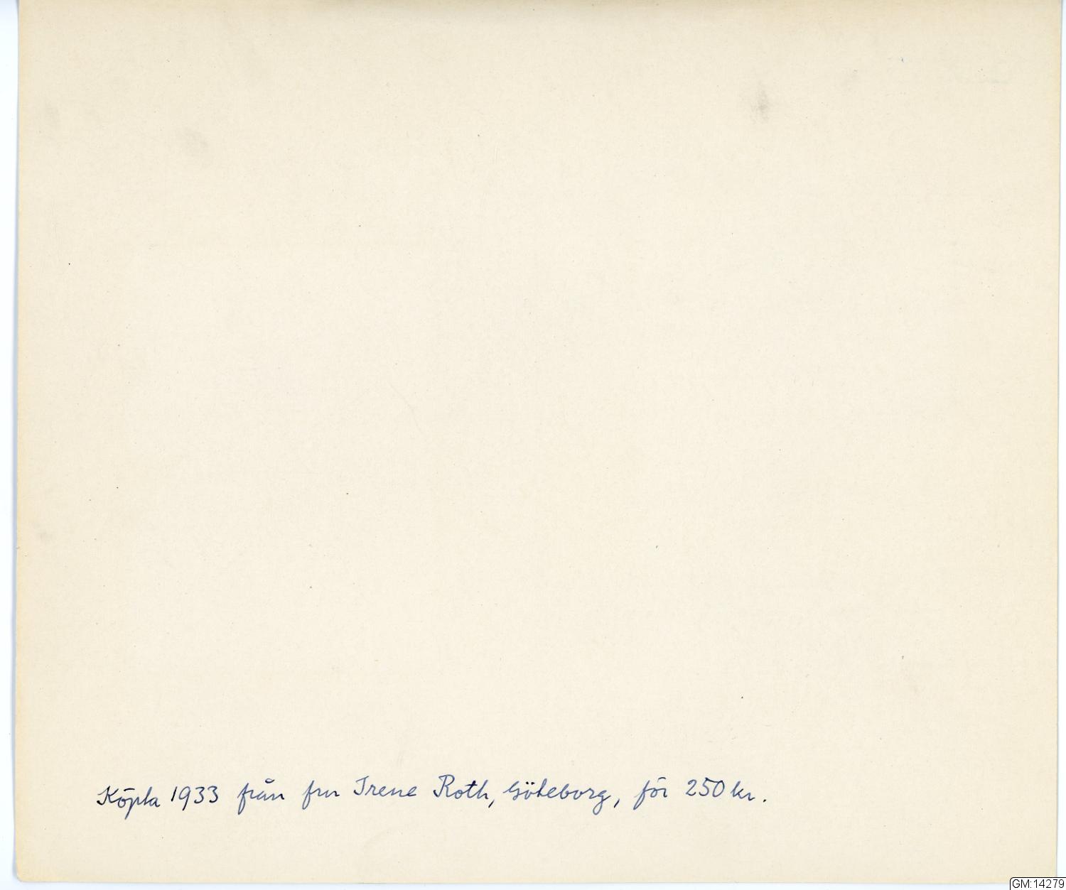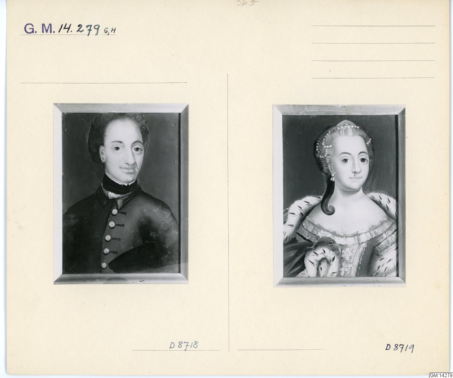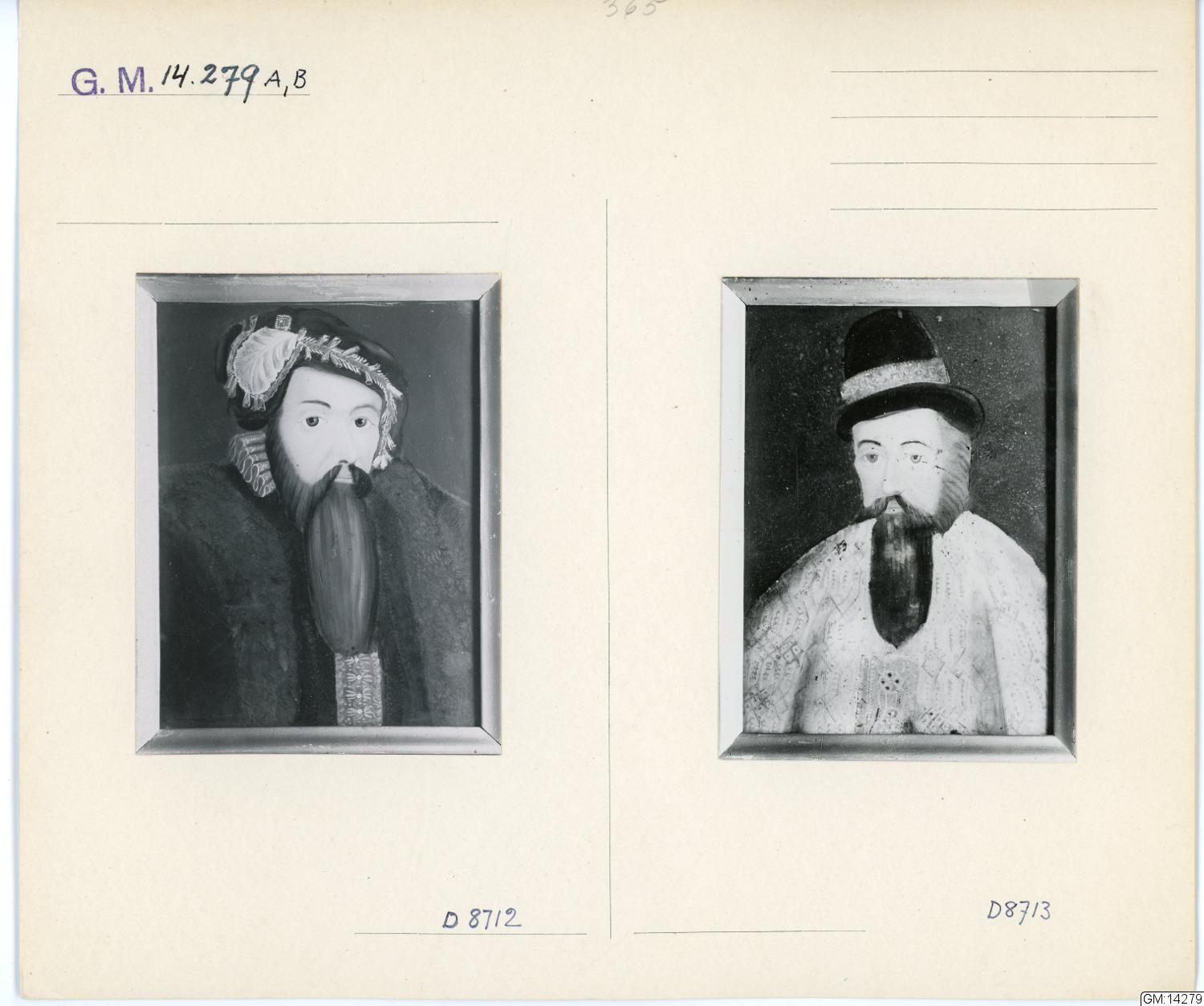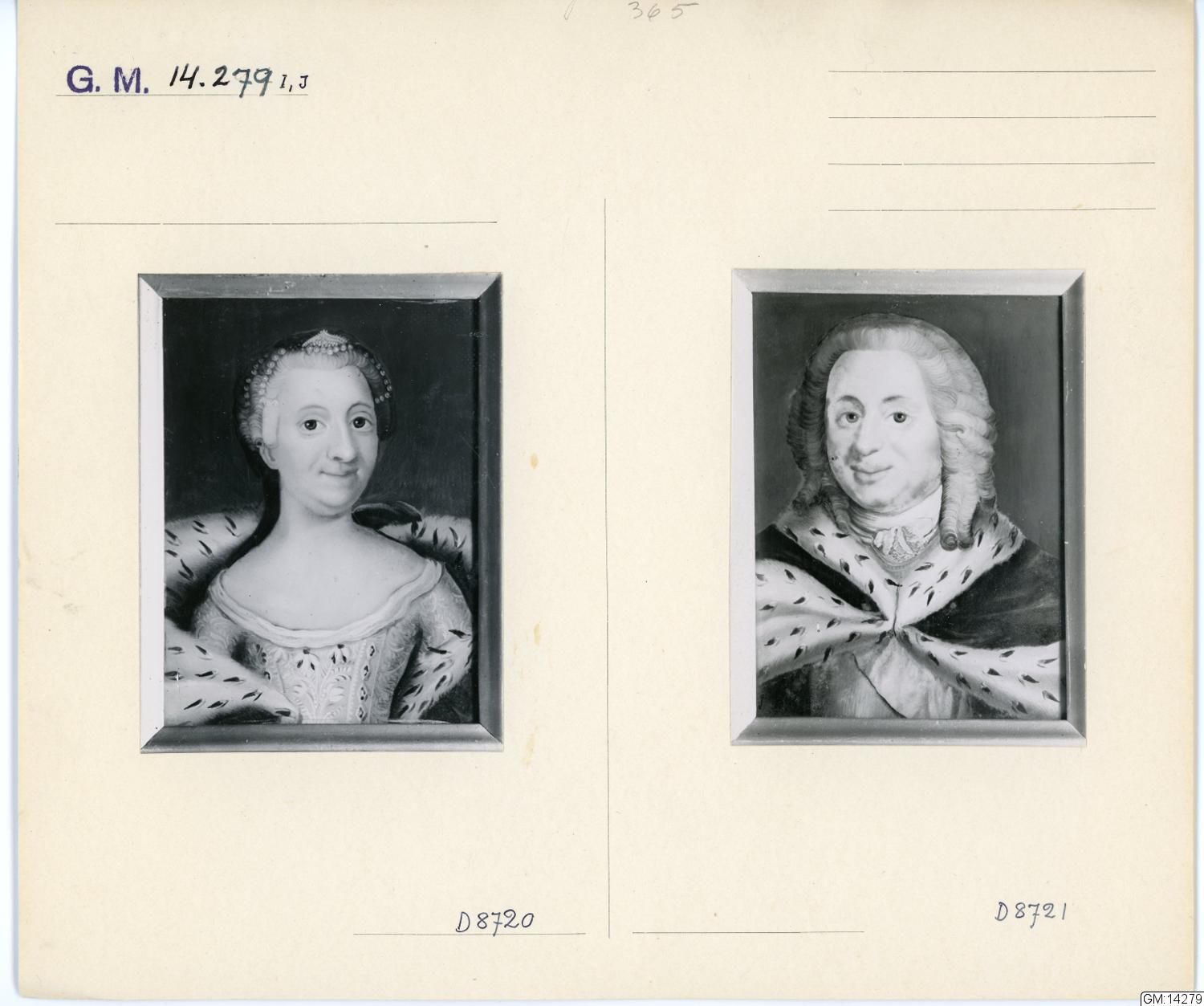 - Målade porträtt på glas (10 st.) föreställande svenska kungar och drottningar. Infällt mellan glas och bakstycken skymtas papper med påskrifter (till synes samtida med målningarna) se detaljbilder under delobjekt GM:14279:j.