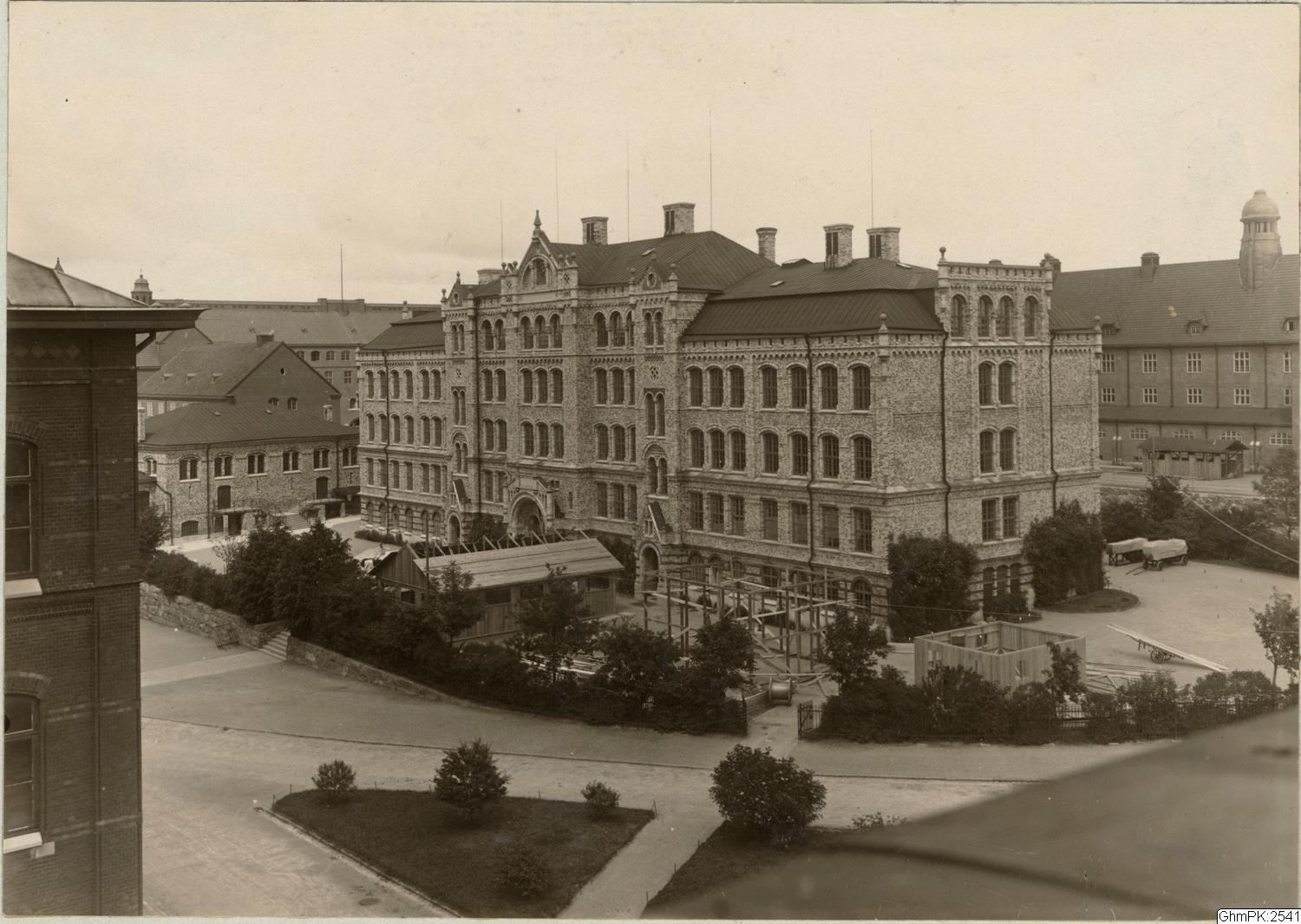 Det som kom att bli Svenska mässan arrangerades av Handelskammaren,1918under en vecka i juli. Man hade inga egna lokaler utan hyrde in sig i bland annat Göteborgs handelsinstitut, Latinläroverket och Götabergsskolan. På fotot pågår byggnation inför evenemanget.
