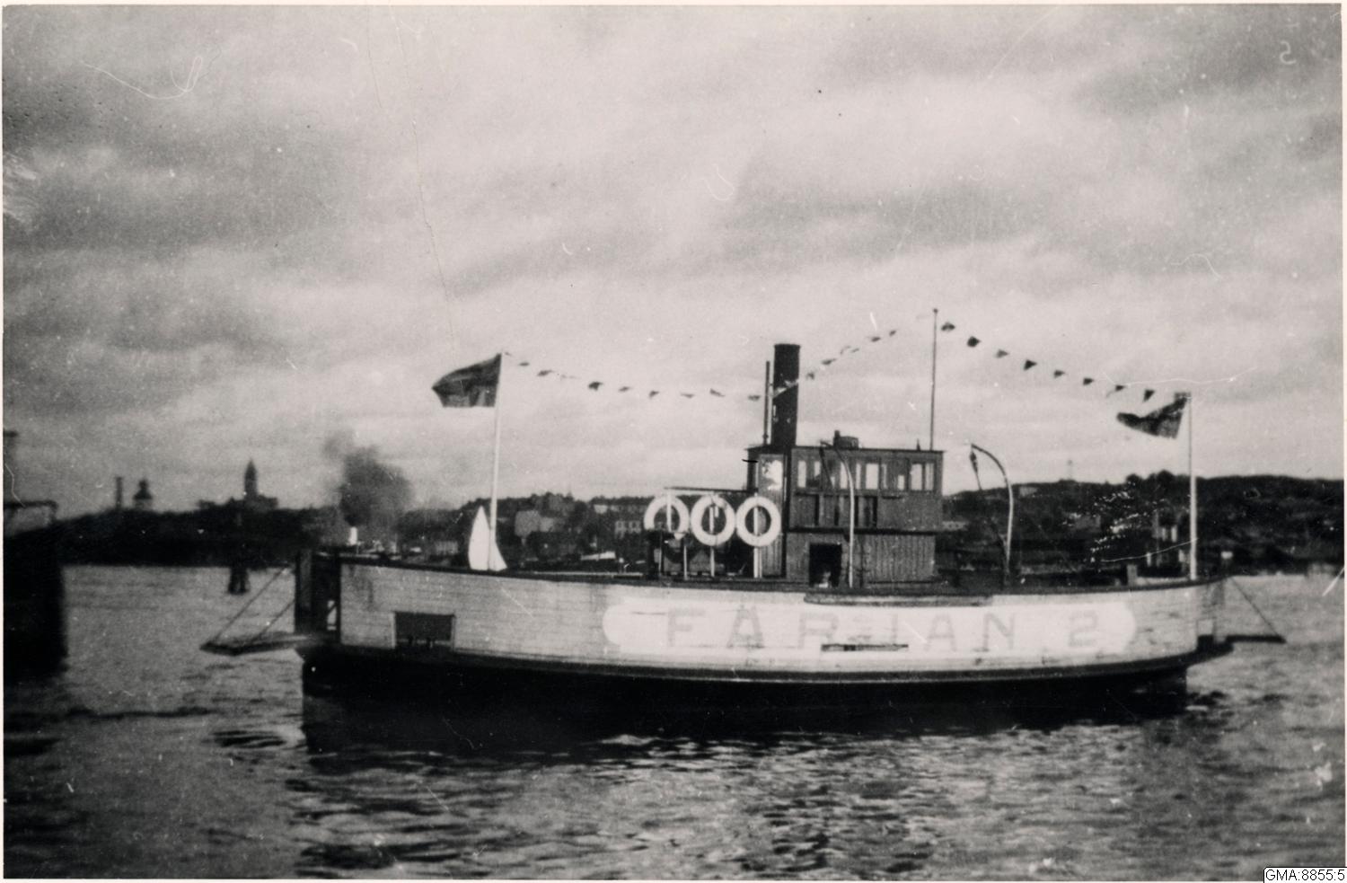 - Färjan 2, gamla Bonnafröjda. Sista turen i december 1928 innan hon ersattes med en ny färja med samma namn, Färjan 2. Färjan är i närheten av Färjenäs