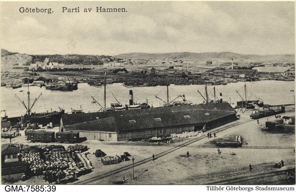 - Hamnparti. Vy tagen från södra älvsidan, mot Hisingslandet.