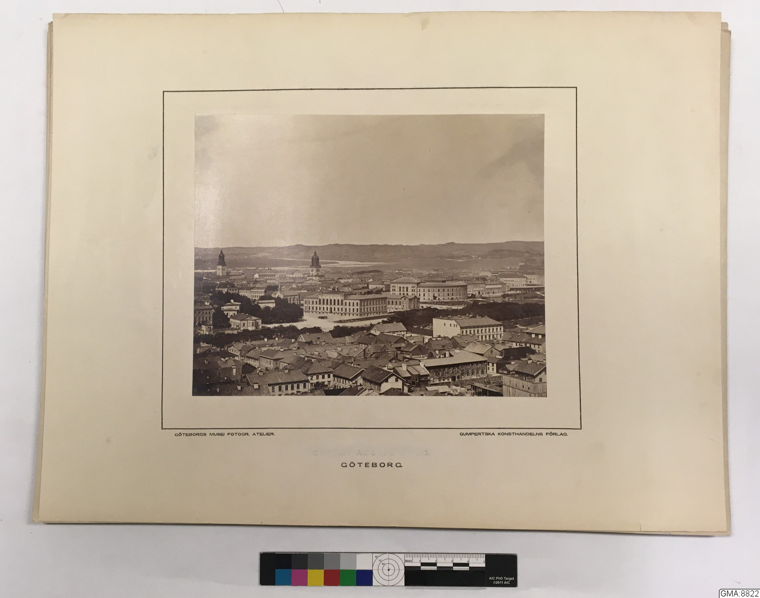 fotografi: Panorama mot centrala Göteborg från skansen Kronan. 1870. "Göteborgs Musei Fotogr. Atelier. / Gumpertska Konsthandeln förlag."