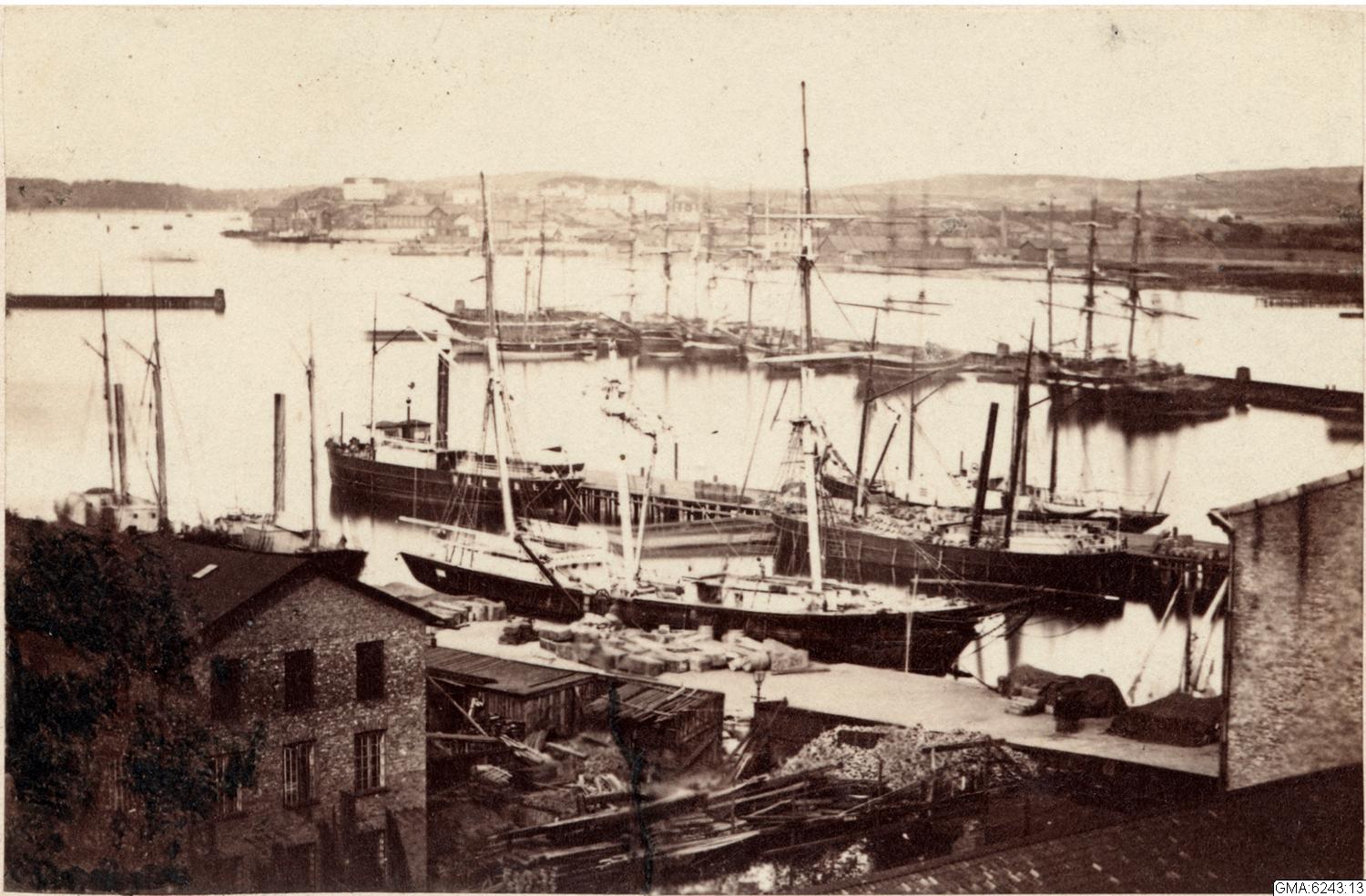 Göteborgs hamn, Skeppsbron, blick västerut från Stora Otterhällan, i fonden Hisingen.