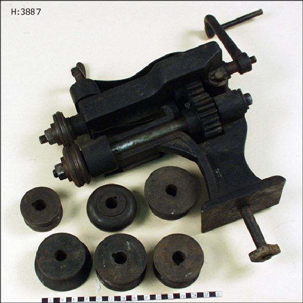 zickmaskin med trissor; redskap och verktyg