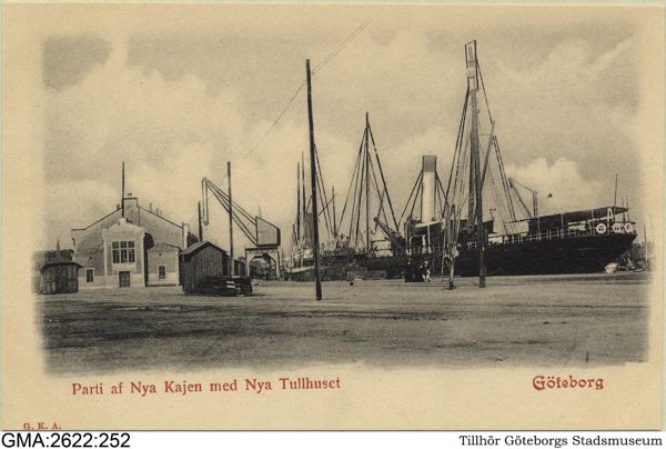 - Göteborgs hamn. Vykort, tryckt i två färger, med sv/v fotografi som förlaga.