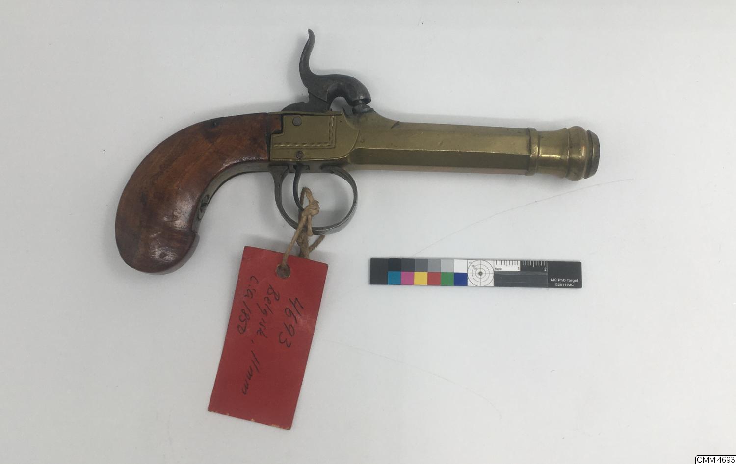 - med undantag för varbygel, hane och avtryckare som är tillverkade i järn är pipa m.m gjorda i mässing. Träkolv.