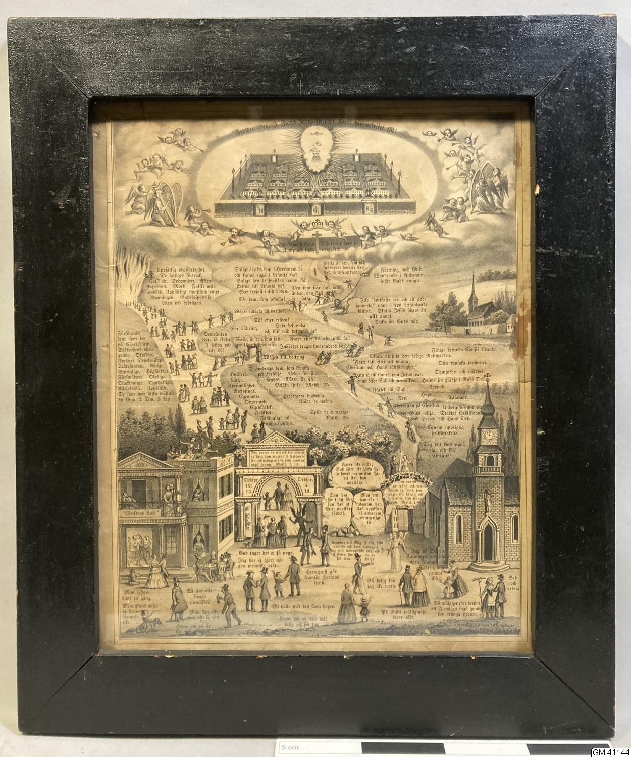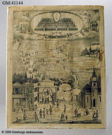 trycket föreställer det moraliska valet över hur livet ska levas enligt ett kristet synsätt, den breda lätta vägen och den smala svåra vägen, dess belöningar och straff.