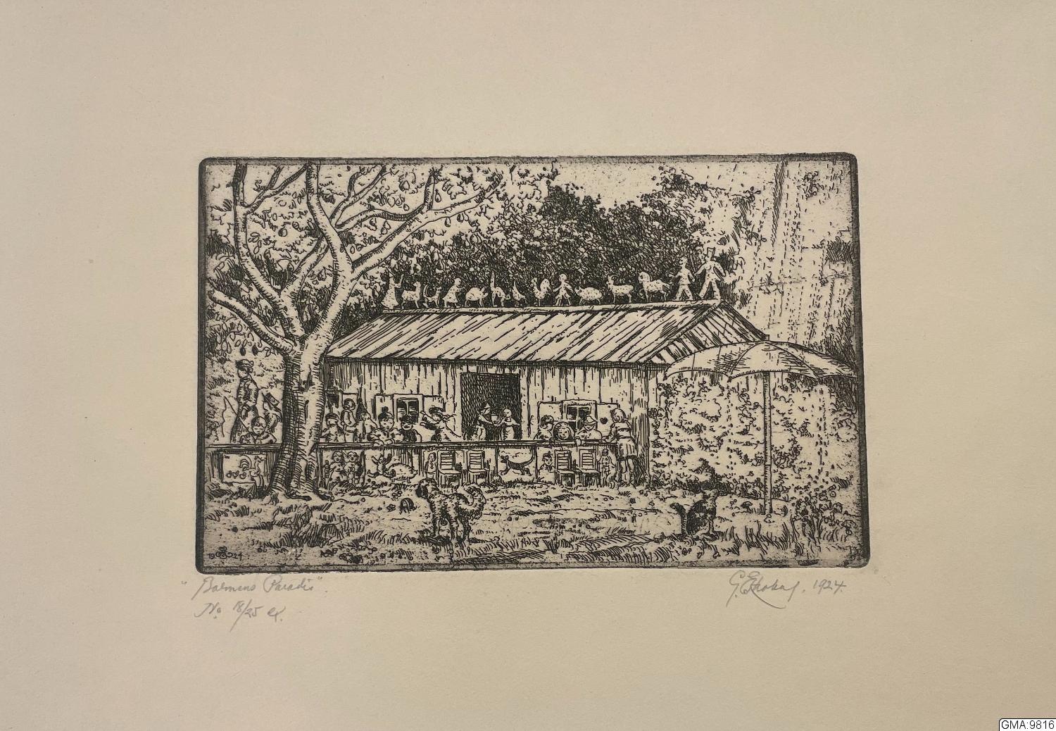 radering av Gideon Ekholm (1886-1952): "Barnens Paradis." Nr 18 av 25 ex.