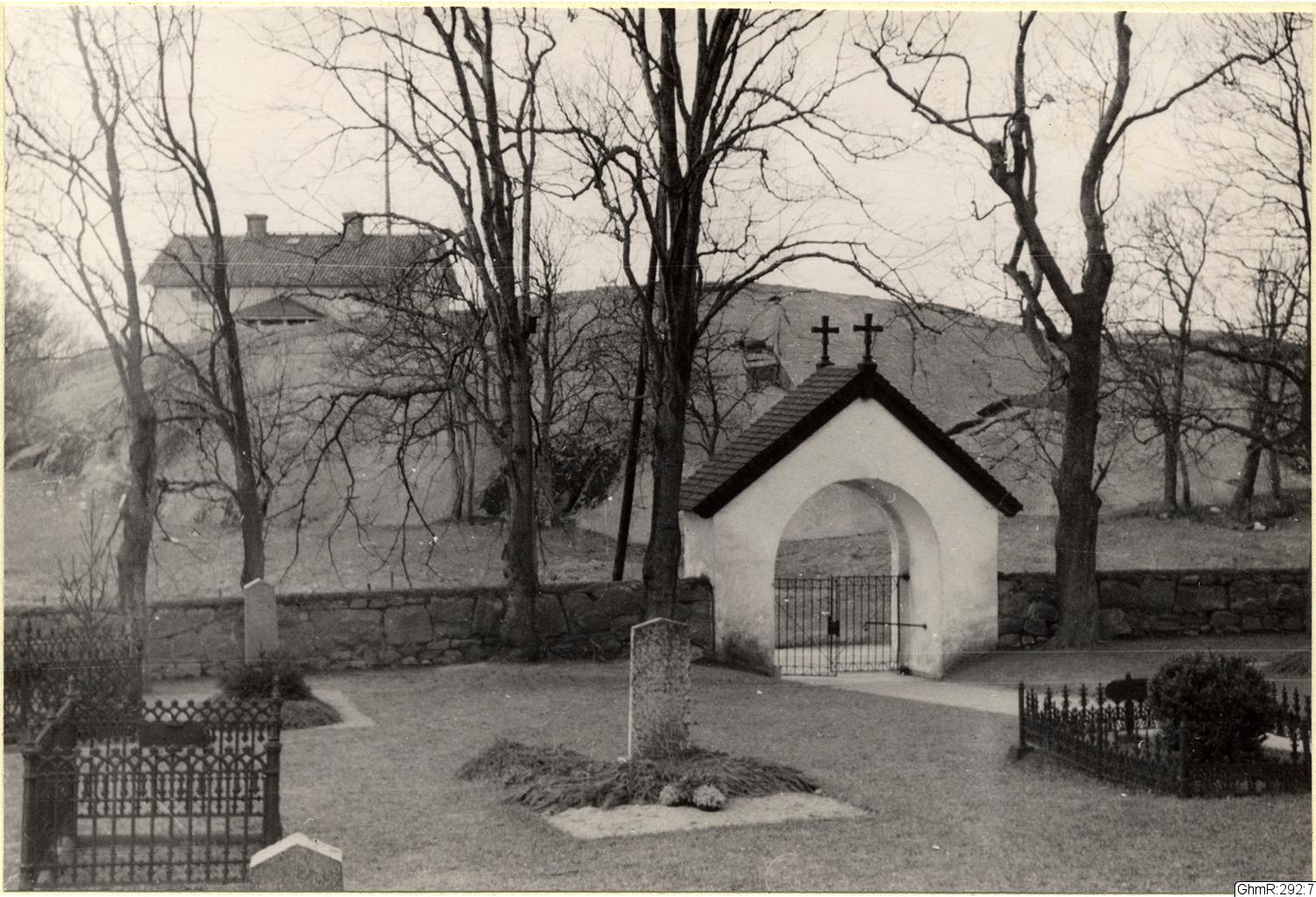 - Lundby gamla kyrkogård, sedd från Lundby gamla kyrka, med blick mot sydväst och i bakgrunden syns Putsegården.