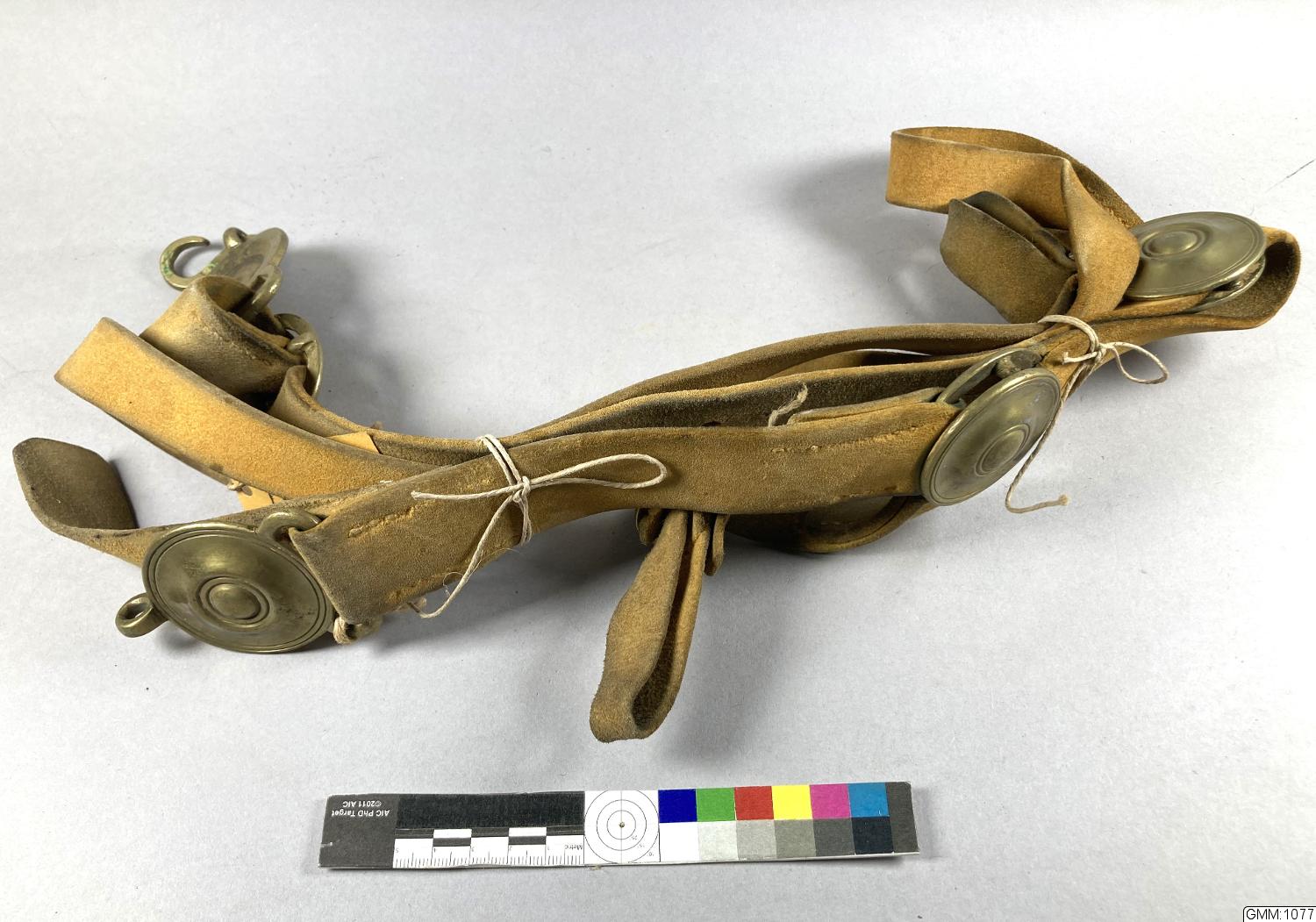 för manskap vid fältartilleriet. Gult skinn med två koppelremmar. Beslag av mässing.