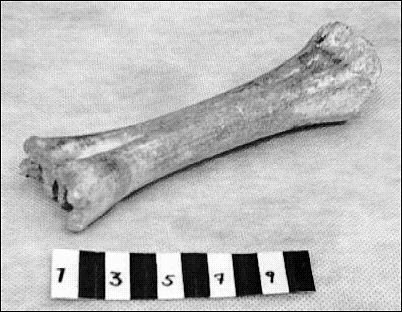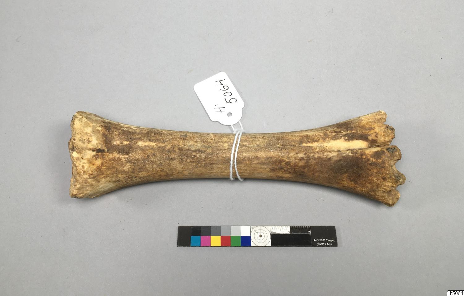 Material: ben#Teknik: skuret#Nagg utformad av ett kalvben. Ena ledkapseln med utskurna knaggar.