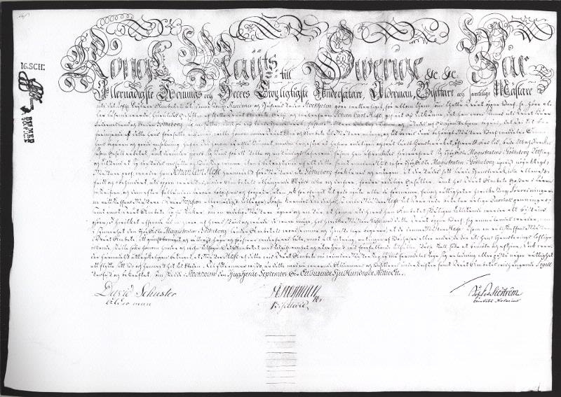 mästarbrev å pergament utfärdat den 24/9 1791 för Repslagarmästare Johan Carl Hesse.