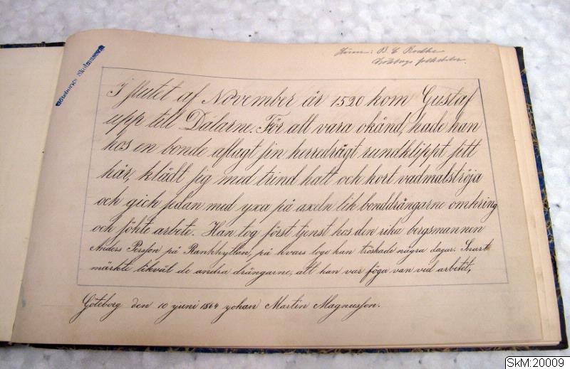 sammanbindning av elevers skriv- och diktamensprover. Lärare B. C. Rodhe, som troligtvis är den som samlat ihop proven för inbindning.