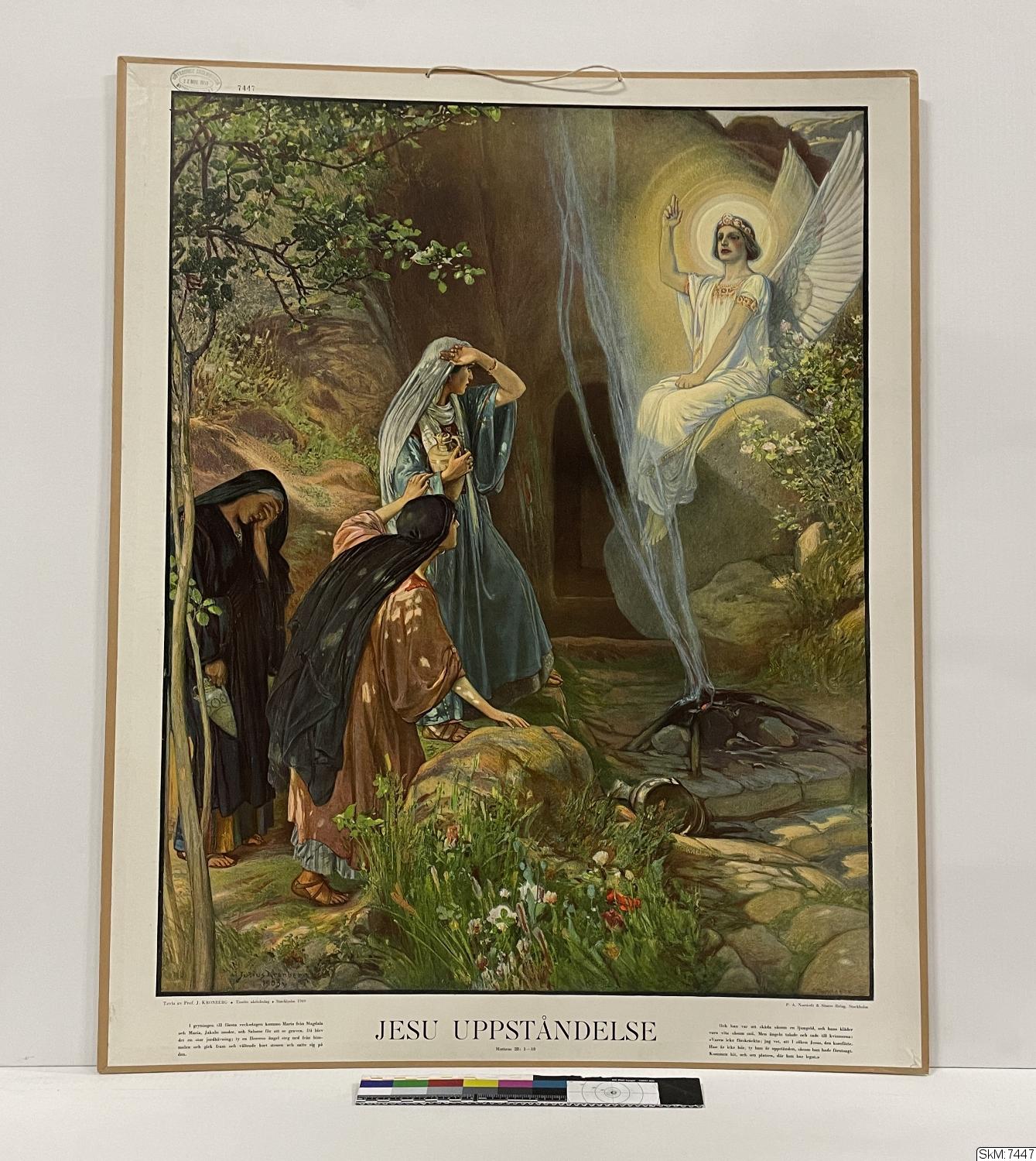 Motiv:"Jesu uppståndelse Matteus 28:1-10", polykrom bild.