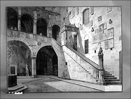 Motiv: Palazzo Baregello in Florenz. polykrom, med grön kant.