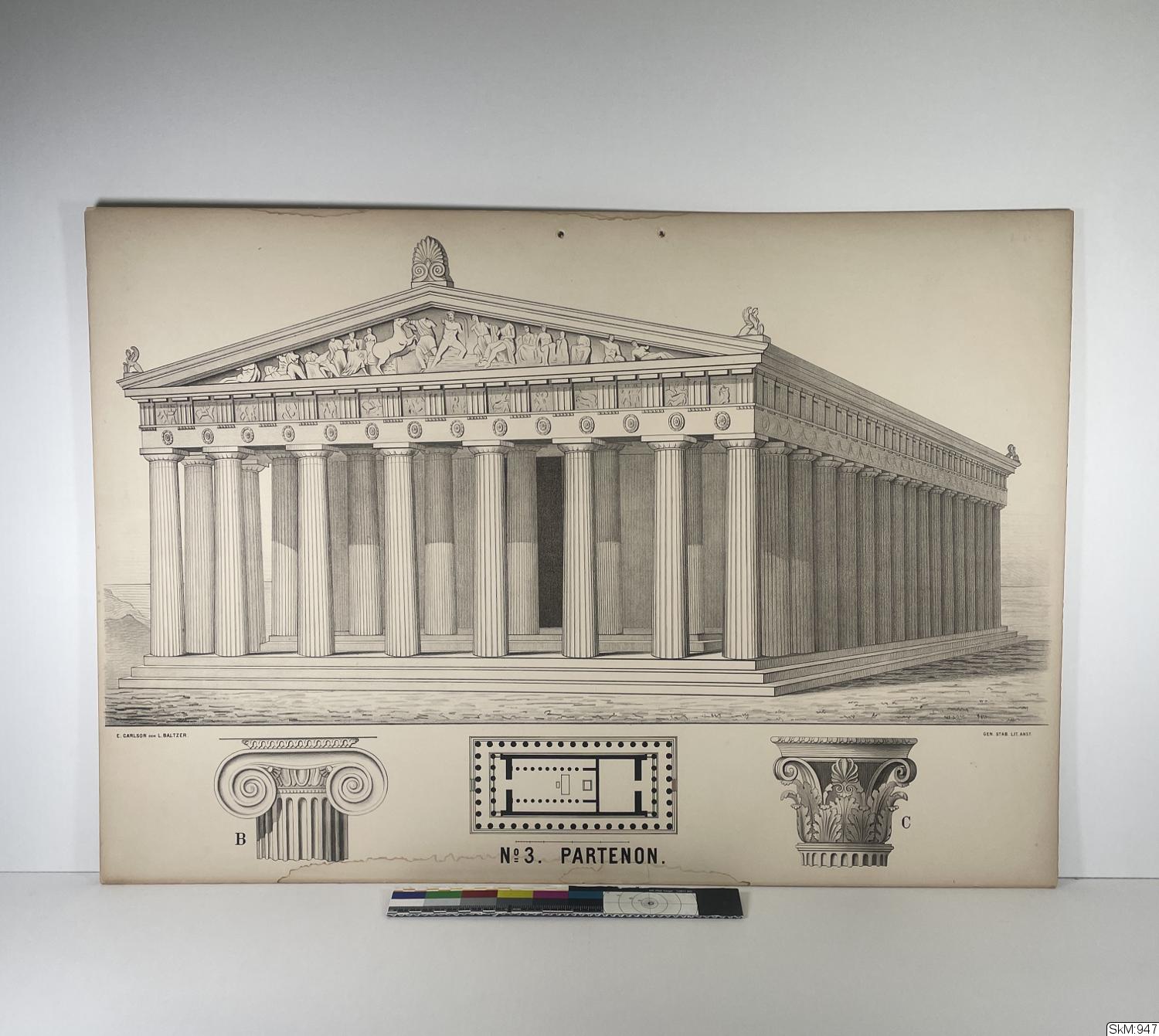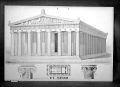 Motiv: Partenon, kolonnordning och planritning, svart/vit.