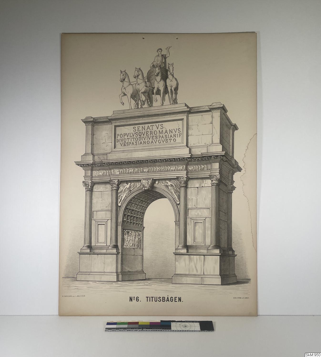 - Motiv: Titusbågen, svart/vit#Serie: No 6 Tavlor ur den allmänna historien. Redaktör/Tillverkare: Ernst Carlson L. Baltzer. Något fuktskadad framför allt längs ena långsidan. Enstaka märken.
