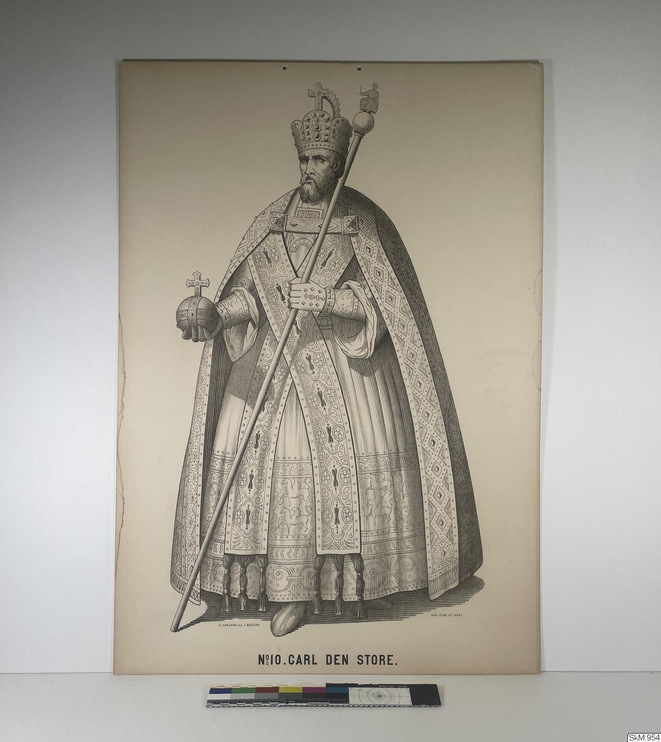 Tryckt hos Generalstabens Litografiska Anstalt.#; Serien "Taflor ur allmänna historien" gavs ut av Norstedts år 1885. Upphovsmännen, Lauritz Baltzer och Ernst Carlson var kollegor på Göteborgs högre realläroverk. Illustrationerna är av teckningsläraren Baltzer, medan texten – inklusive det separata texthäftet – författades av historieläraren Carlson. Texthäftet berättar historiska fakta om det som syns på bilden. Tanken var att läraren skulle kunna använda det som underlag när planschen visades.