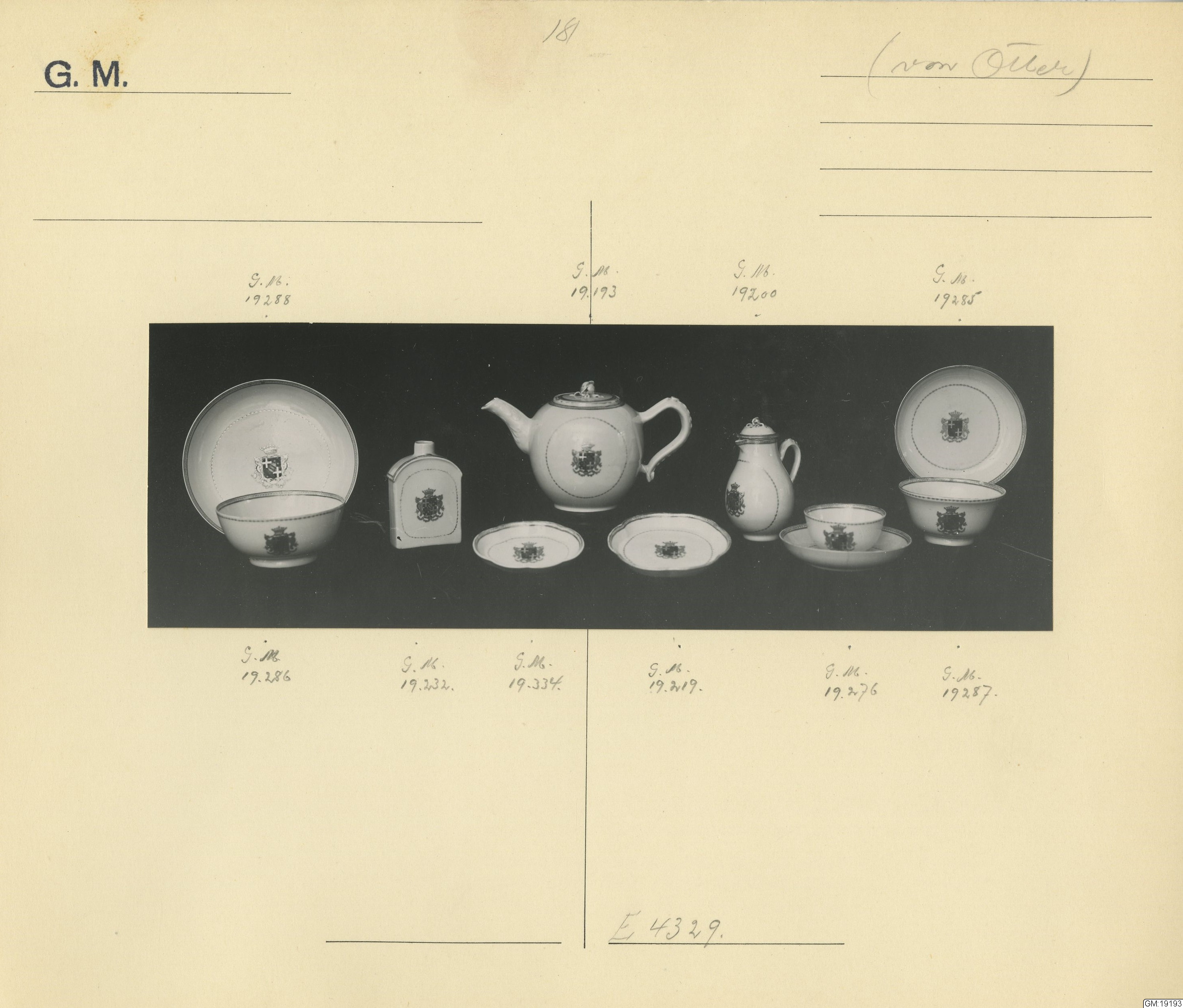 GM 19122-19347 utgör en samling ostindiskt porslin, försedd med olika svenska adelsfamiljrs vapen och förvärvad i ett sammanhang. Samlingen hopbragt av arkitekten Evert Strokirk, Stockholm.