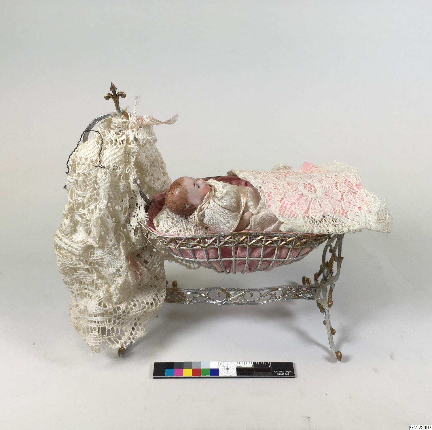 GM:28407 :: dockskåpsföremål, dockvagga, leksaker