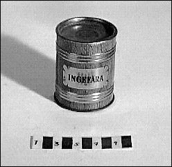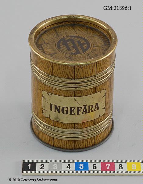 Cylindrisk burk av bleckplåt för "INGEFÄRA"