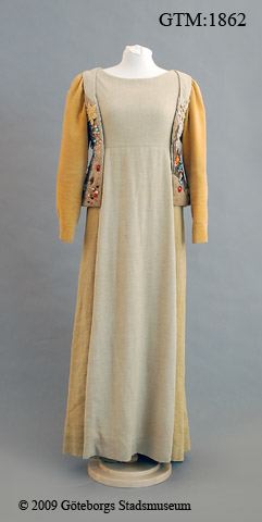 - Teaterkostym bestående av klänning med tillhörande väst. Damkostym för verket Romeo och Julia, buren av Carina Boberg som Julia, Göteborgs stadsteater 1985-09-13. Dräkten förefaller inspirerad av Italienskt mode 1400 talets andra hälft. Klänning av mjukt lite grovt blekt dovgult tyg med öppen väst av brun sammet dekorerad med glaspärlor och spetsapplikationer.