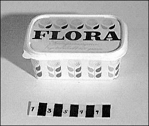 Tillvaratagen efter information i massmedia om att denna förpackningstyp för smör och margarin skulle indragas 1 juli 1975 p.g.a att PCB-plast ingår i den. - Miniatyr förpackningar för självserveringar o.d indrogs omedelbart.