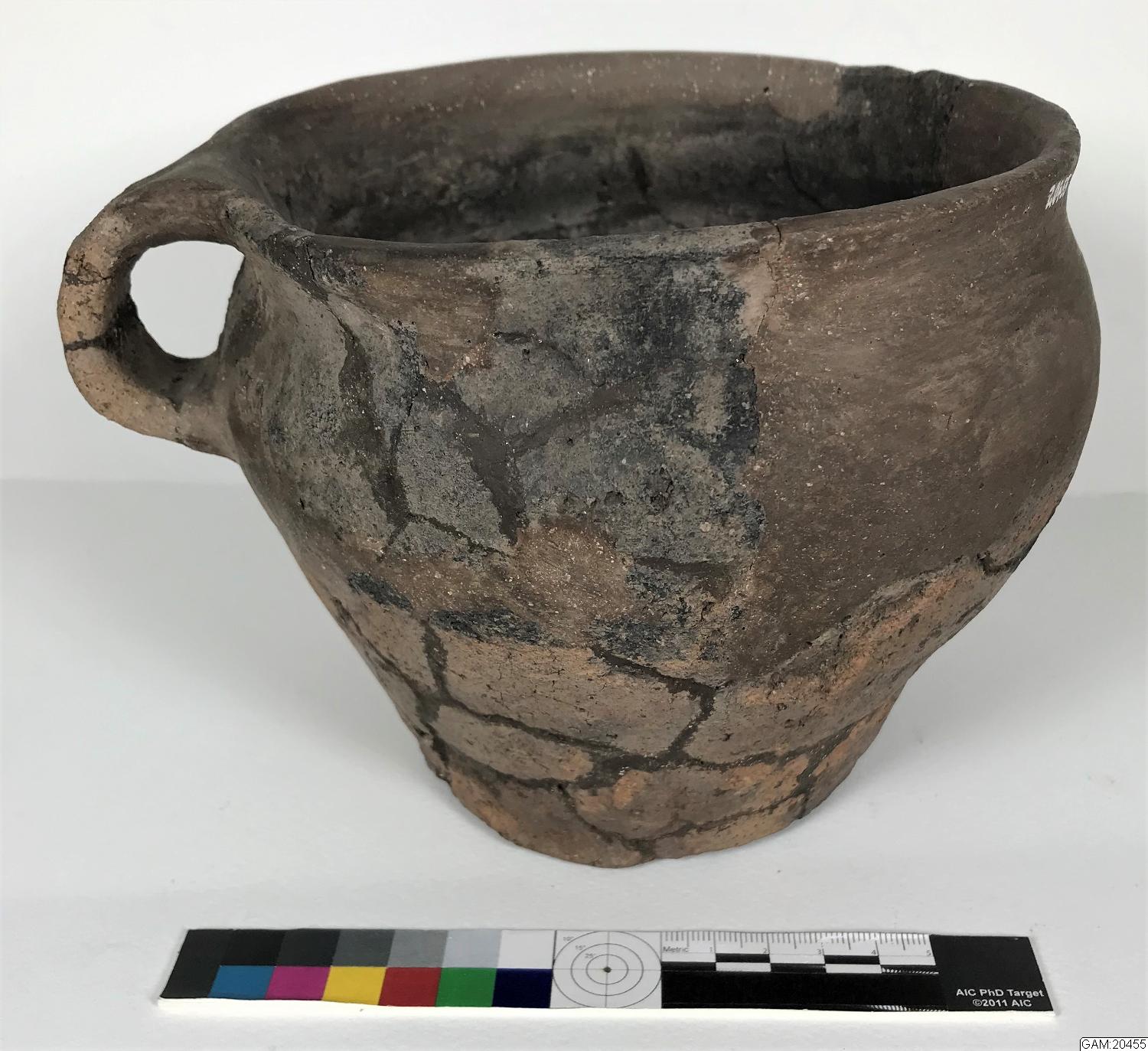 Härtill brända ben från urnan och från kolbädden samt kol från kolbädden. Från inmätta punkten.