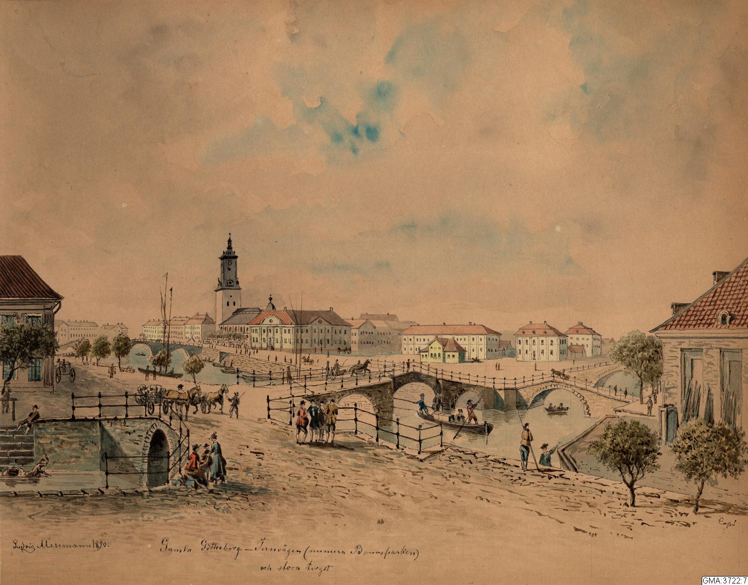 - Göteborgsmotiv med Gustav Adolfs torg, Stora Hamnkanalen och Järnvågen. Inspiration från bild av Elias Martin från slutet på 1700-talet (GM:1452).