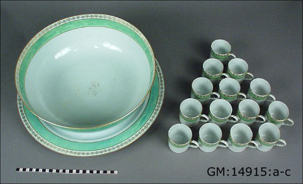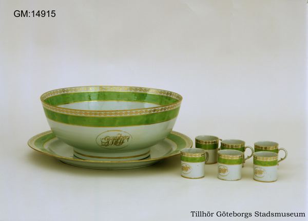 bålskål med fat och 14 muggar från Qianlong 1736-1795, Qing-dynastin.