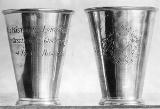 "Bägare, 2 st, Lin- och drällvävargesällernas i Göteborg, 1755.