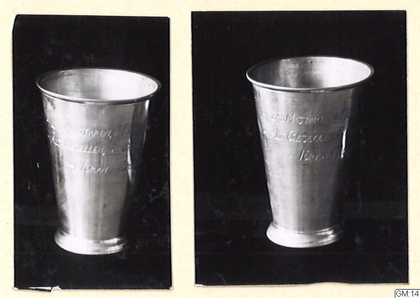 - "Större pokal af tenn, maken till föreg." (dvs GM:14)