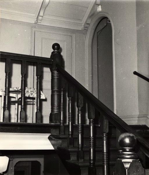 Kallebäcks sörgård,trappan till andra vån. Längst ner till v. skymtar entrén.