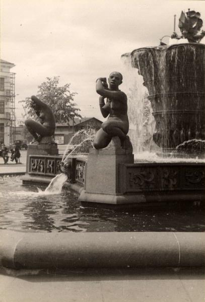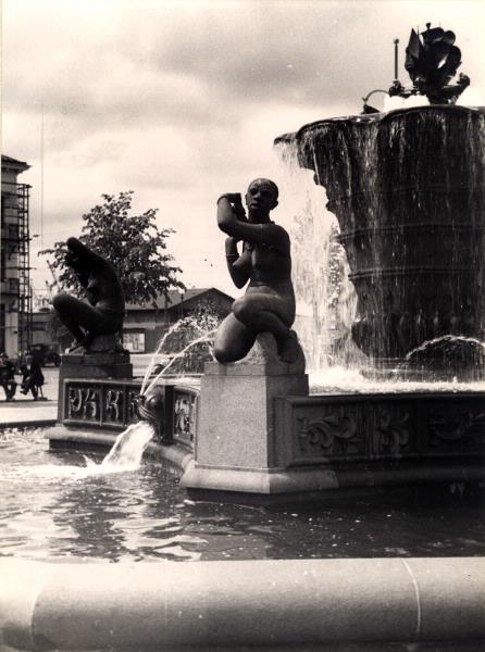 - Järntorget med Järntorgsbrunnen. Den främre kvinnofiguren föreställer Afrika, den bortre Oceanien.
