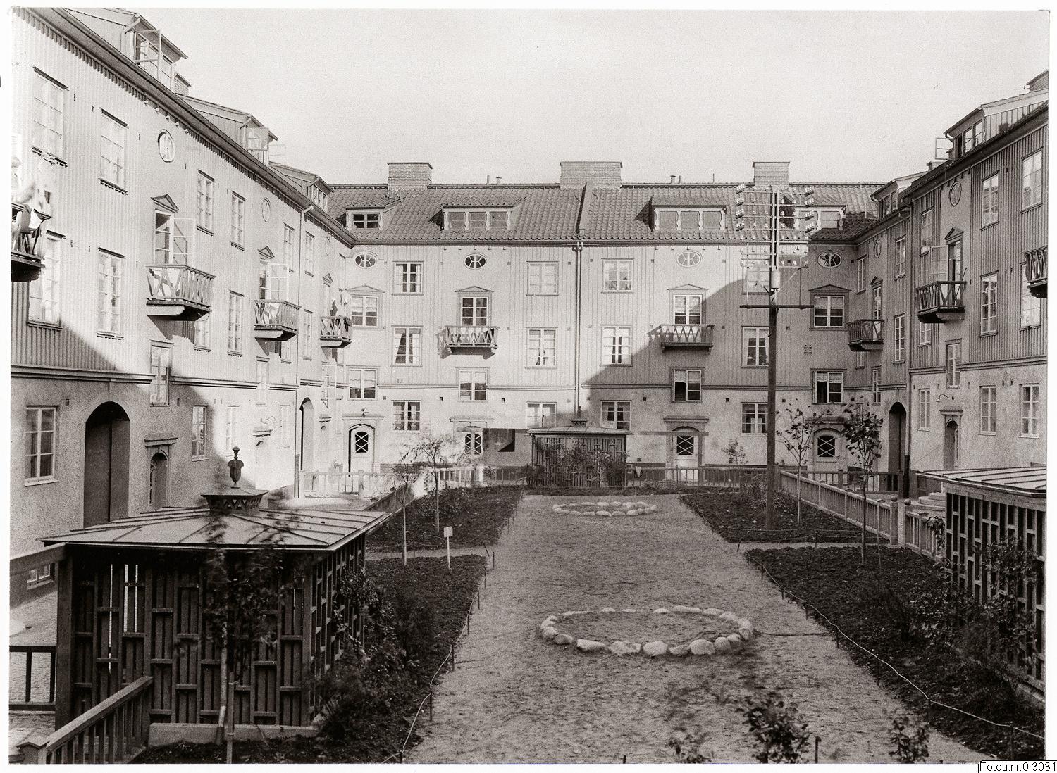 Innergården till det kringbyggda kvarteret Gerumsberget byggt på 1929.